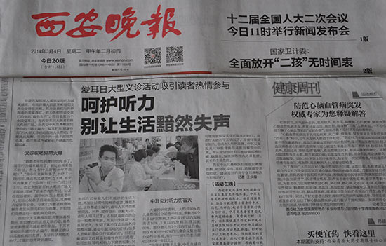 耳朵是我们与外界沟通的重要器官,听力的损伤会令我们的生活“黯然失声”。3月3日为第15次 爱耳日,在西安市北大街老百姓大药房广场,由西安新城中大耳鼻喉医院举办的一场主题为“爱耳护耳 健康听力”的大型义诊活动现场人头攒动。